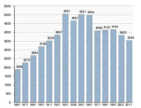 في سنة 1861 بلغ عدد السكان 1٬896 نسمة، وتطور العدد ليصل في سنة 2011 لـ 3٬549 نسمة.