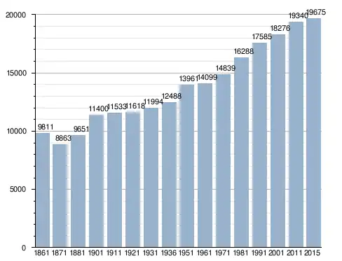 في سنة 1861 بلغ عدد السكان 9٬811 نسمة، وتطور العدد ليصل في سنة 2015 لـ 19٬675 نسمة.