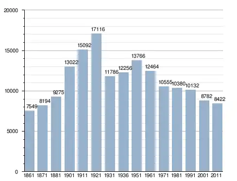 في سنة 1861 بلغ عدد السكان 7٬549 نسمة، وتطور العدد ليصل في سنة 2011 لـ 8٬422 نسمة.