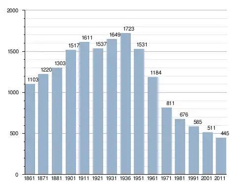 في سنة 1861 بلغ عدد السكان 1٬103 نسمة، وتطور العدد ليصل في سنة 2011 لـ 445 نسمة.