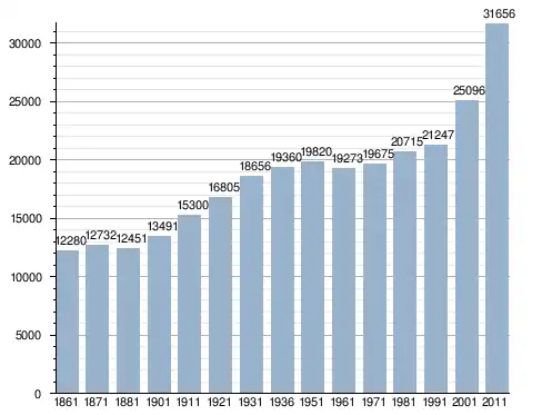 في سنة 1861 بلغ عدد السكان 12٬280 نسمة، وتطور العدد ليصل في سنة 2011 لـ 31٬656 نسمة.