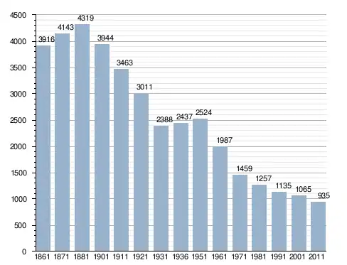 في سنة 1861 بلغ عدد السكان 3٬916 نسمة، وتطور العدد ليصل في سنة 2011 لـ 935 نسمة.
