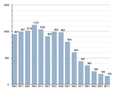 في سنة 1861 بلغ عدد السكان 947 نسمة، وتطور العدد ليصل في سنة 2011 لـ 159 نسمة.