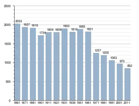 في سنة 1861 بلغ عدد السكان 2٬033 نسمة، وتطور العدد ليصل في سنة 2011 لـ 852 نسمة.