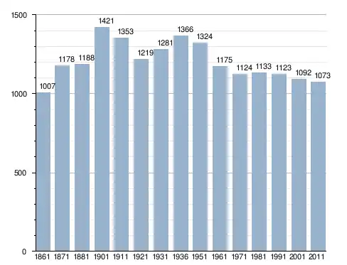 في سنة 1861 بلغ عدد السكان 1٬007 نسمة، وتطور العدد ليصل في سنة 2011 لـ 1٬073 نسمة.