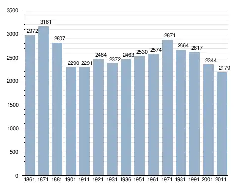 في سنة 1861 بلغ عدد السكان 2٬972 نسمة، وتطور العدد ليصل في سنة 2011 لـ 2٬179 نسمة.