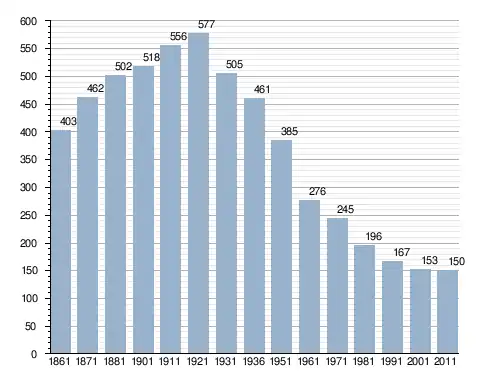 في سنة 1861 بلغ عدد السكان 403 نسمة، وتطور العدد ليصل في سنة 2011 لـ 150 نسمة.