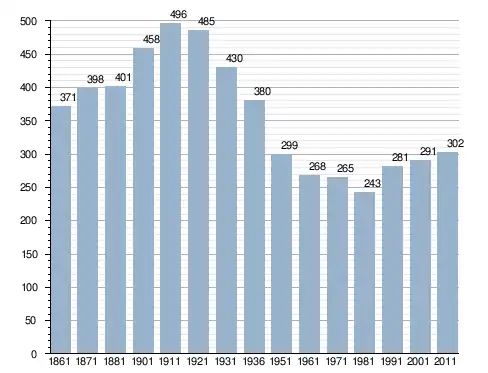 في سنة 1861 بلغ عدد السكان 371 نسمة، وتطور العدد ليصل في سنة 2011 لـ 302 نسمة.