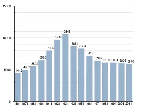 في سنة 1861 بلغ عدد السكان 4٬442 نسمة، وتطور العدد ليصل في سنة 2011 لـ 5٬870 نسمة.