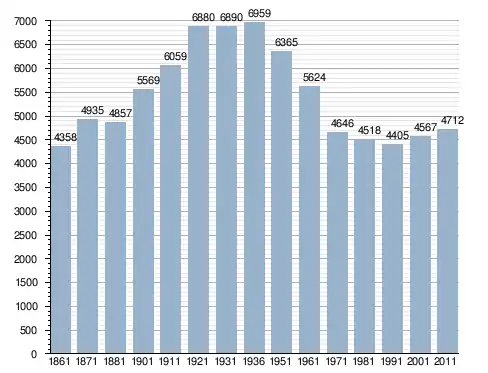 في سنة 1861 بلغ عدد السكان 4٬358 نسمة، وتطور العدد ليصل في سنة 2011 لـ 4٬712 نسمة.