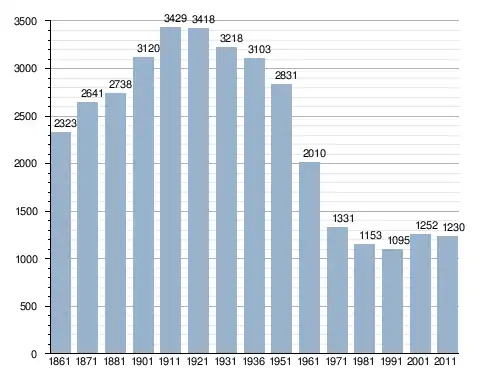 في سنة 1861 بلغ عدد السكان 2٬323 نسمة، وتطور العدد ليصل في سنة 2011 لـ 1٬230 نسمة.