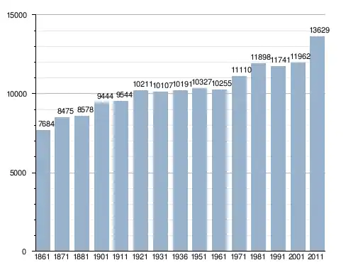 في سنة 1861 بلغ عدد السكان 7٬684 نسمة، وتطور العدد ليصل في سنة 2011 لـ 13٬629 نسمة.