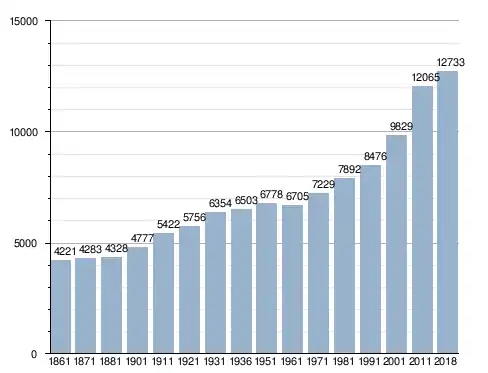 في سنة 1861 بلغ عدد السكان 4٬221 نسمة، وتطور العدد ليصل في سنة 2018 لـ 12٬733 نسمة.
