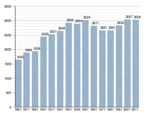 في سنة 1861 بلغ عدد السكان 1٬645 نسمة، وتطور العدد ليصل في سنة 2011 لـ 3٬028 نسمة.