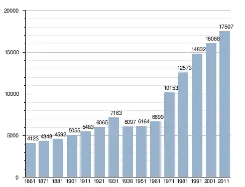 في سنة 1861 بلغ عدد السكان 4٬123 نسمة، وتطور العدد ليصل في سنة 2011 لـ 17٬507 نسمة.