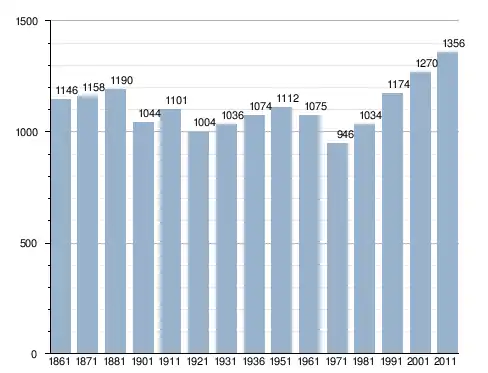 في سنة 1861 بلغ عدد السكان 1٬146 نسمة، وتطور العدد ليصل في سنة 2011 لـ 1٬356 نسمة.