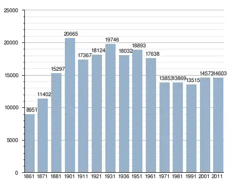 في سنة 1861 بلغ عدد السكان 8٬951 نسمة، وتطور العدد ليصل في سنة 2011 لـ 14٬603 نسمة.