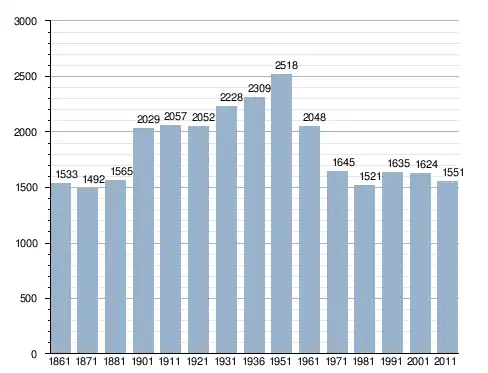 في سنة 1861 بلغ عدد السكان 1٬533 نسمة، وتطور العدد ليصل في سنة 2011 لـ 1٬551 نسمة.