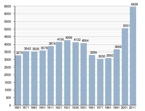 في سنة 1861 بلغ عدد السكان 3٬275 نسمة، وتطور العدد ليصل في سنة 2011 لـ 6٬458 نسمة.