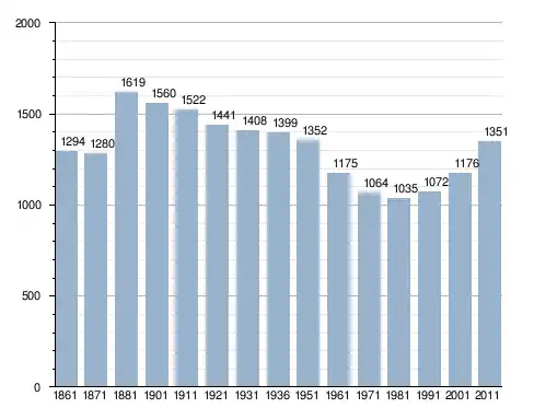 في سنة 1861 بلغ عدد السكان 1٬294 نسمة، وتطور العدد ليصل في سنة 2011 لـ 1٬351 نسمة.