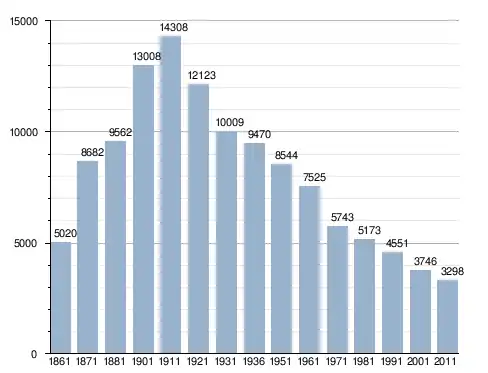 في سنة 1861 بلغ عدد السكان 5٬020 نسمة، وتطور العدد ليصل في سنة 2011 لـ 3٬298 نسمة.