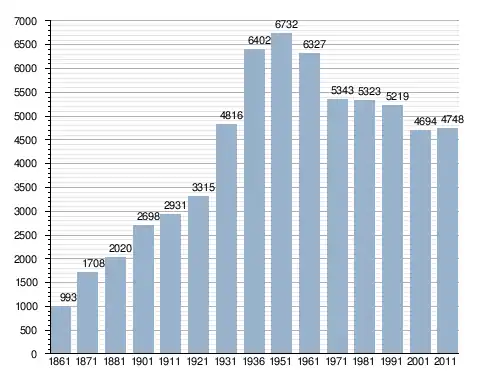 في سنة 1861 بلغ عدد السكان 993 نسمة، وتطور العدد ليصل في سنة 2011 لـ 4٬748 نسمة.