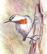 11,5 سم في القامة، والريش العلوي لونه رمادي، ومعظم الريش السفلي لونه أبيض | موطنهم في بورما[22] |