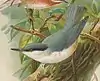 13,5 سم في القامة، والريش العلوي لونه أزرق مع الرمادي، لدى الذكور شريط أسود عازل حول العينين مفصول عن الشريط الأبيض، ولدى الإناث شريط رمادي حول العينين والرأس | موطنهم في شمال شرق الجزيرة (أقل من 1,000)[26] |