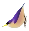 12,5_13,5سم في القامة، والريش السفلي لونه أبيض، أما الريش العلوي فلونه بنفسجي، ومنقاره لونه أصفر | فيتنام، وهاينان، والصين[35] |