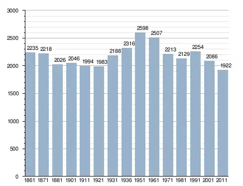 في سنة 1861 بلغ عدد السكان 2٬235 نسمة، وتطور العدد ليصل في سنة 2011 لـ 1٬922 نسمة.