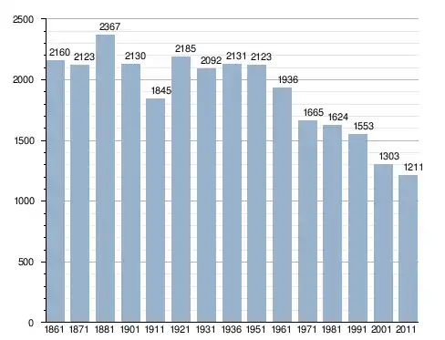 في سنة 1861 بلغ عدد السكان 2٬160 نسمة، وتطور العدد ليصل في سنة 2011 لـ 1٬211 نسمة.