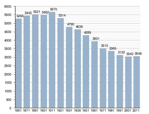 في سنة 1861 بلغ عدد السكان 5٬266 نسمة، وتطور العدد ليصل في سنة 2011 لـ 3٬048 نسمة.