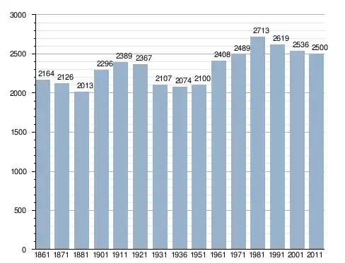 في سنة 1861 بلغ عدد السكان 2٬164 نسمة، وتطور العدد ليصل في سنة 2011 لـ 2٬500 نسمة.