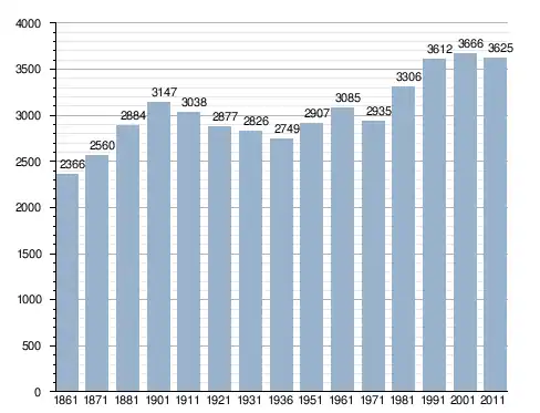في سنة 1861 بلغ عدد السكان 2٬366 نسمة، وتطور العدد ليصل في سنة 2011 لـ 3٬625 نسمة.
