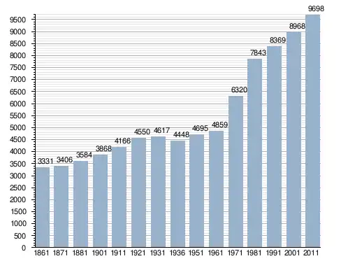 في سنة 1861 بلغ عدد السكان 3٬331 نسمة، وتطور العدد ليصل في سنة 2011 لـ 9٬698 نسمة.