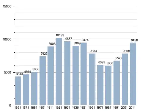 في سنة 1861 بلغ عدد السكان 4٬343 نسمة، وتطور العدد ليصل في سنة 2011 لـ 9٬458 نسمة.