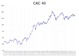 |CitationClass=تم تجاهله (مساعدة) - "CAC 40 (^FCHI) Historical Data - Yahoo Finance". finance.yahoo.com (باللغة الإنجليزية). مؤرشف من الأصل في 24 مارس 2020. اطلع عليه بتاريخ 05 ديسمبر 2020. الوسيط