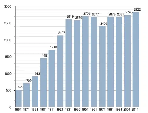 في سنة 1861 بلغ عدد السكان 522 نسمة، وتطور العدد ليصل في سنة 2011 لـ 2٬822 نسمة.