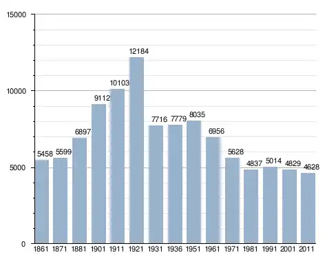 في سنة 1861 بلغ عدد السكان 5٬458 نسمة، وتطور العدد ليصل في سنة 2011 لـ 4٬628 نسمة.