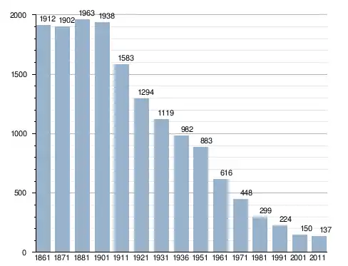 في سنة 1861 بلغ عدد السكان 1٬912 نسمة، وتطور العدد ليصل في سنة 2011 لـ 137 نسمة.