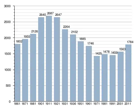 في سنة 1861 بلغ عدد السكان 1٬802 نسمة، وتطور العدد ليصل في سنة 2011 لـ 1٬784 نسمة.
