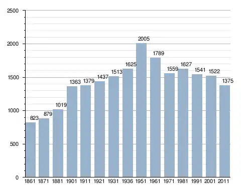 في سنة 1861 بلغ عدد السكان 823 نسمة، وتطور العدد ليصل في سنة 2011 لـ 1٬375 نسمة.