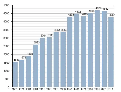 في سنة 1861 بلغ عدد السكان 1٬543 نسمة، وتطور العدد ليصل في سنة 2011 لـ 4٬267 نسمة.