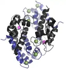|CitationClass=تم تجاهله (مساعدة) - Strupat, K; Rogniaux, H; Van Dorsselaer, A; Roth, J; Vogl, T (September 2000). "Calcium-induced noncovalently linked tetramers of MRP8 and MRP14 are confirmed by electrospray ionization-mass analysis". Journal of the American Society for Mass Spectrometry. 11 (9): 780–8. PMID 10976885. الوسيط