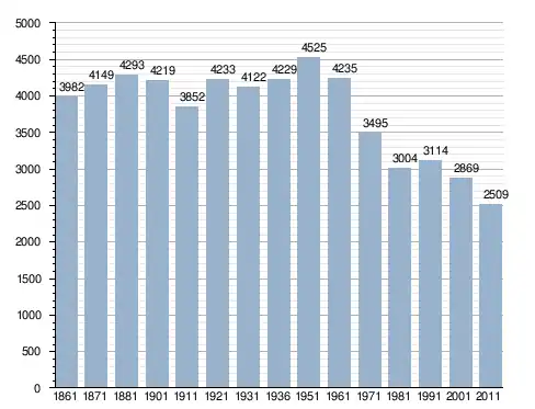 في سنة 1861 بلغ عدد السكان 3٬982 نسمة، وتطور العدد ليصل في سنة 2011 لـ 2٬509 نسمة.