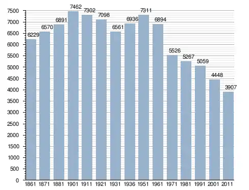 في سنة 1861 بلغ عدد السكان 6٬229 نسمة، وتطور العدد ليصل في سنة 2011 لـ 3٬907 نسمة.