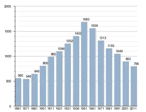 في سنة 1861 بلغ عدد السكان 560 نسمة، وتطور العدد ليصل في سنة 2011 لـ 796 نسمة.