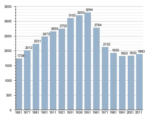 في سنة 1861 بلغ عدد السكان 1٬738 نسمة، وتطور العدد ليصل في سنة 2011 لـ 1٬883 نسمة.