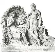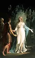 ![]() كاليبسو تستقبل تلماخوس ومنتور في الكهف رسم وليام هاميلتون | |