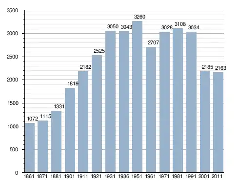 في سنة 1861 بلغ عدد السكان 1٬072 نسمة، وتطور العدد ليصل في سنة 2011 لـ 2٬163 نسمة.